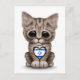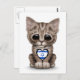 Cute Kitten Cat with Israeli Flag Heart, white Postcard