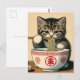 Cute Kitten Eating Ramen Woodblock Print Postcard