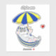 Cute kitten in blue and yellow hammock. Text can be personalised. Great to keep in mind vacations, hollidays and retirement!