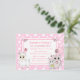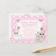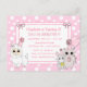 Sweet hand drawn cartoon kitty cat, mouse and llama pink and white polka dots bows girl's birthday party invitations.