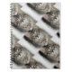 This notebook shows a closeup of an adorable blue-eyed, grey-striped kitten looking up at you with trusting eyes. This little kitten began his life as a feral and abandoned kitten that we found in our backyard. This scared and hissing feral kitten soon learned to enjoy being loved and being held by us. Adopted by a wonderful family, this kitten now enjoys the comfort of beds and laps instead of the cold and miserable life of a feral cat.