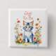 A sweet little kitten surrounded by pink and coral flowers watercolor illustration baby shower Gigi to be button.