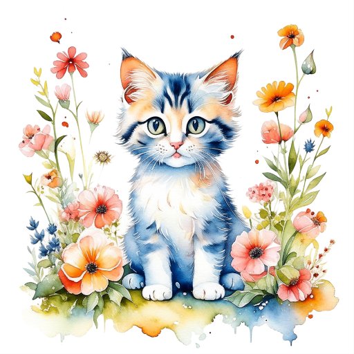 A sweet little kitten surrounded by pink and coral flowers watercolor illustration it's a girl baby shower favour bags.