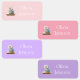 Add a touch of sweetness to school and daycare supplies with these personalised pink and lilac name labels featuring an adorable kitten with a backpack. Designed with four soft, coordinating shades, these clothes stickers help little ones recognise their items with ease. Durable, waterproof, and easy to apply to fabric, lunch boxes, books, and more — they’re a must-have for cat-loving kids heading back to school or nursery. A charming and practical gift idea for girls!
