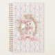 Capture your thoughts in this adorable and charming notebook. The design features a sweet, fluffy white kitten adorned with delicate pink bows, framed by beautiful roses and elegant scrolls. The background is a lovely mix of soft pink stripes and subtle blue floral patterns, giving it a gentle, romantic feel. This notebook is perfect for cat lovers and anyone who appreciates a cute, vintage-inspired aesthetic. Use it for journalling, school notes, or as a delightful gift for a friend.
