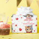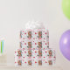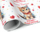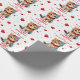 The cute pattern on this Christmas wrapping paper includes an adorable little tiger striped kitten who is wrapped up in a string of bright Christmas lights. Between the kitten images is your custom text in red. Everything is placed on a multi colour round ball confetti background that is sprinkled with red hearts and some gold stars. This is a perfect paper for grandparents, parents, aunts and uncles to wrap family gifts in. Be sure to see the gift tags and other matching products in our store.