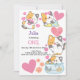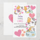 This unique Baby girls 1st birthday Invitation white background with cute cats and personalised easily for any age.