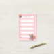 Cute ginger tabby kitty cat and roses on pink and white stripes Post-it Notes. Text can be personalised.