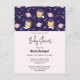 Baby shower invitation postcard with an adorable pattern featuring kitty cat astronauts floating in space. Fun and whimsical.