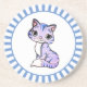Cute kitty cat cartoon & blue rays coaster