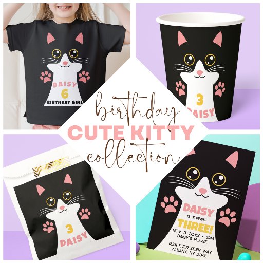 Cute Kitty Cat Parent's Birthday Party T-Shirt