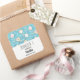 Soap, candle (or other) business product stickers with a cute cat pattern, set on a blue background and decorated with rainbows and paw prints and more.
