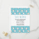 Save the date postcard with a cute cat pattern, set on a blue background and decorated with rainbows and paw prints and more.