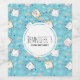 Birthday bottle labels with a cute cat pattern, set on a blue background and decorated with rainbows and paw prints and more.