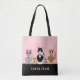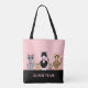 Cute Kitty Cat Team & Calligraphy on Black & Pink Tote Bag