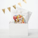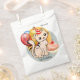 Cute kitty festive birthday favour bag featuring a kitten with balloons and a cupcake. Great for a child's birthday party.