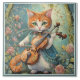 Lovely illustration of a cute cat playing the violin, pretty floral background.