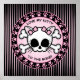 Cute kitty skull and crossbones set on a pink background with paw prints.