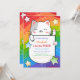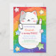 These cute and cheerful birthday party invitations feature a cute kitty surrounded by stars on a colorful wavy rainbow stripes background. Personalize the birthday party invites by adding your child's name, age, and party details.