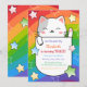 Cute Kitty Stars Colorful Wavy Stripes Birthday Invitation