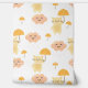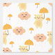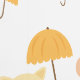 Colour Palette: A gentle and inviting combination of pastel colours. The kitties are depicted in soft shades of yellow, the umbrellas in cheerful orange, and the clouds in a delicate pink, all set against a crisp white background. The subtle raindrops add a touch of whimsy and movement to the design.