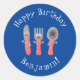 Cute knife fork and spoon cutlery cartoon classic round sticker