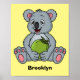 Cute koala and coconut cartoon illustration poster