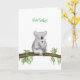 Congratulate new parents and welcome a wee one into the world with this cute card featuring Kalari and Kula the mom and baby koala. The text on the front reads 'New baby!' and inside it says 'Welcome to the world, little one!' Both messages can be customized to add a personal touch. 💚