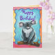 Cute Koala Bear Happy Birthday card is perfect for your next birthday party for anyone who loves cute and cuddly Koala Bears. Make it a cuddly Koala Bear themed-party featuring our kid-friend fun artwork of a Koala Bear sitting on a branch with a pretty green forest behind. On many of our party supplies you'll find this adorable Koala Bear from the back with -- surprise -- a baby Koala Bear looking at you. Party on!