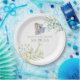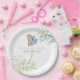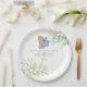 Gender neutral hand painted watercolor Baby Shower paper plates featuring eucalyptus leaves, flowers, olive branches and mama and baby Koala.