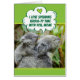 Cute baby koala bear riding on her mum's back. The talk bubble says (with a heart above), "I love spending koala-ty time with you, Mum." Get it? Kolalaty time. Quality time. A mum who shares your love for puns and wild life will love this Mother's Day card!