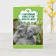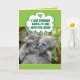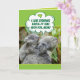 Cute baby koala bear riding on her mum's back. The talk bubble says (with a heart above), "I love spending koala-ty time with you, Mum." Get it? Quality time. A mum who shares your love for puns and wild life will love this Mother's Day card!