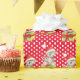 Cute koala bear art wrapping paper featuring a repeat design pattern on a red and whit polka dot background. Koala bear on gift art holding a candy cane seasonal festive wrapping paper. Ideal for your Christmas gifts to koala bear or animal lovers. Cute bear painted in watercolor and designed by Sarah Trett.