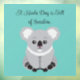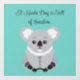 Adorable, picture of a koala on a light teal background, is featured on this window cling for baby's room. With message, "A Koala Day Is Full of Sunshine". Can be used on smooth surfaces like glass, easy to apply and remove. Design is available on a baby bodysuit, bib, blanket and sign to complete the set!