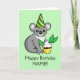 Celebrate your birthday in true Aussie fashion with this adorable koala in a green and gold party hat. He even has a little birthday cupcake made with eucalyptus leaves!