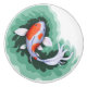 Cute koi fish art that was painted in a whimsical style with shinning white scales and bright orange spots on a swirly teal aqua background.
