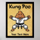 A humourous black-belt karate master, with a poo emoji as head, in a fighting stance. Text reading, "Kung Poo" appears above the image. Customise by adding your own additional text.
