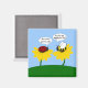 On this cute magnet an annoyed bumble bee sits on a yellow flower and asks, "Why are you bugging me, lady?" to which the smitten ladybug sitting on another flower responds, "Bee-cause you're cute". From my original digitally-created image.