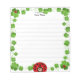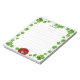 Cute happy ladybug surrounded by good luck four leaf clovers lined Notepad. Ideal for everyone. Lady bug is a universal symbol of good fortune! Great for kids and adults!