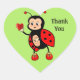 Cute Ladybug and Heart on Green Thank You Sticker