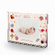 Whimsical and sweet newborn keepsake photo block featuring hand drawn illustration of pink and red ladybugs with wildflowers. You can add your baby's photo with birth stats information. Works best with a horizontal photo.