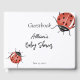 White and Black Baby Shower Guestbook featuring red ladybugs in watercolor. It’s very easy to customise, with your personal details.