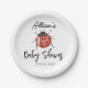 White and Black Baby Shower Paper Plates featuring a red ladybug in watercolor. It’s very easy to customise, with your personal details.