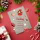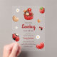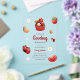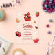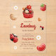 Baby shower acrylic invitation featuring cute lovebug, cupcake, flower and strawberry illustrations all in a red, white and light brown colour scheme. Paired with the illustrations are a playful script font and an elegant sans serif in which all you personalised information is written. Check out our store for more items from this collection.