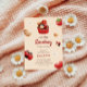 Baby shower invitation featuring cute lovebug, cupcake, flower and strawberry illustrations all in a red, white and light brown colour scheme. Paired with the illustrations are a playful script font and an elegant sans serif in which all you personalised information is written. Check out our store for more items from this collection.