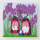 The new addition to the ladybug family has just arrived. It's a rare, blue ladybug! Proud parents, who stand tall, and proud as they show off their unique little bug. There is green grass below them, and purple funky textured daisies above with blue skies.