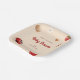 Baby shower paper plates featuring cute lovebug, cupcake, flower and strawberry illustrations all in a red, white and light brown colour scheme. Paired with the illustrations are a playful script font and an elegant sans serif in which all you personalised information is written. Check out our store for more items from this collection.