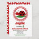 This girl's birthday invitation features a cute red and black ladybug on a green leaf with a fun smile and cute curly antennae.