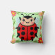 Cute Ladybug Illustration Surrounded by Flowers Cushion
