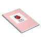Writing material with a cute ladybug with black hearts in place of the traditional black spots. White dots and pink hearts pattern as background. Adorable and girly design for girls. Personalise with child's name.
